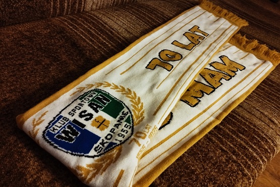 Podczas jutrzejszego meczu z Czarnymi Lipa będzie można zakupić nowe, jubileuszowe szaliki KS Wisan Skopanie.