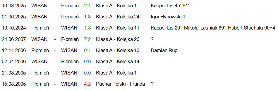 Nasze poprzednie spotkanie z Płomieniem Trześń odbyło się 10 sierpnia 2025 roku w ramach 1. kolejki A klasy. Mecz na stadionie w Skopaniu zakończył się zwycięstwem Wisanu 2:1. Rywale wprawdzie jako pierwsi wyszli na prowadzenie, ale po czerwonej kartce udało się naszym piłkarzom wykorzystać grę w liczebnej przewadze. Jeszcze przed przerwą stan rywalizacji wyrównał Kacper Lis, a w 61 minucie zdobył on decydującą bramkę.